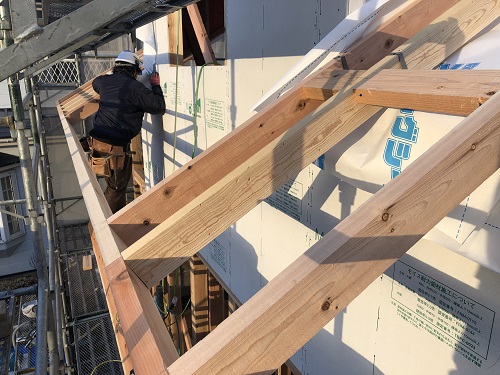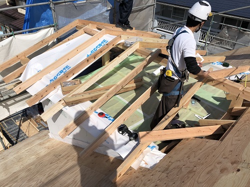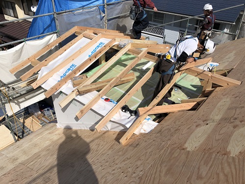 屋根工事はドーマー部の絡みで手こずっていますが、着実に進んでいます。