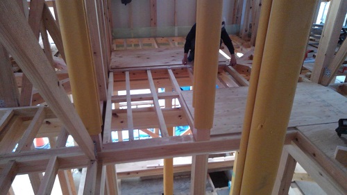 2階の床根太が進みました。
