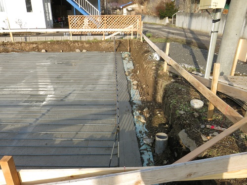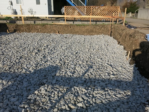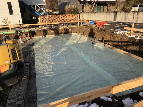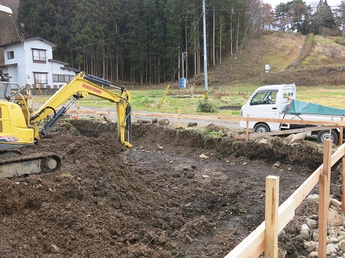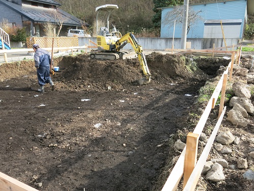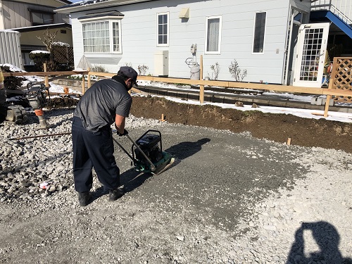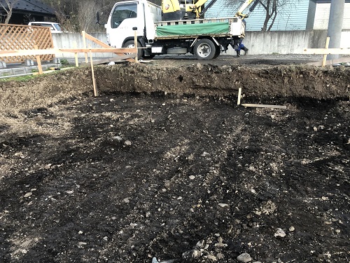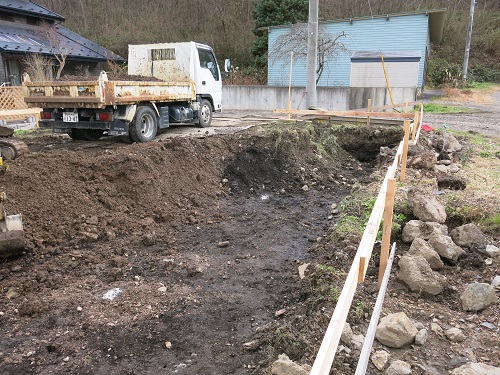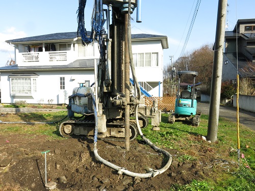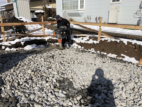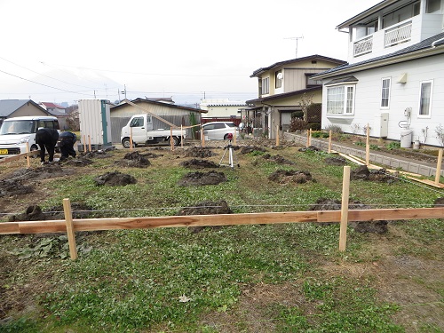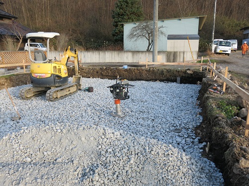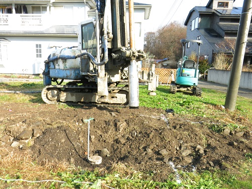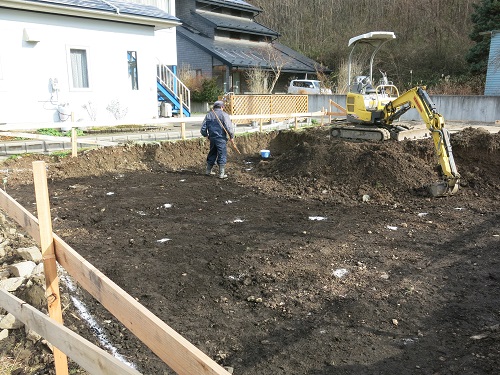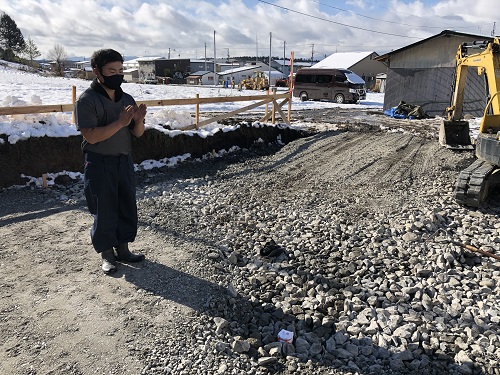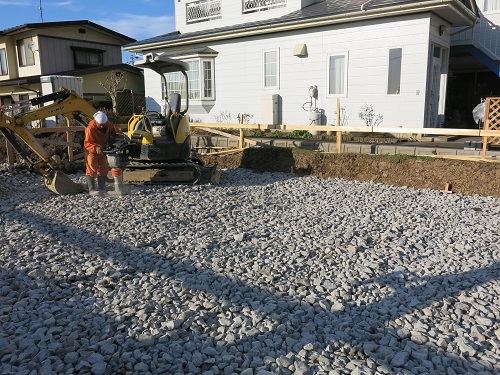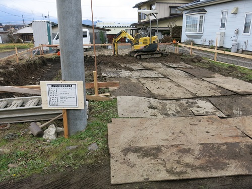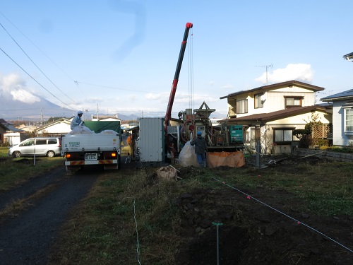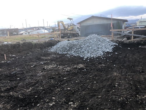 渋民字愛宕の新築工事は地盤改良工事が完了しました。