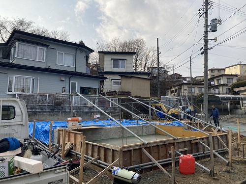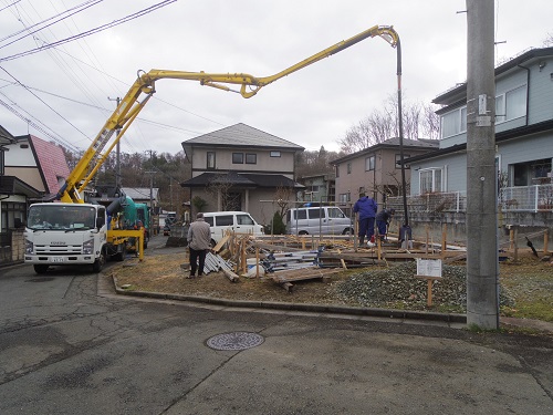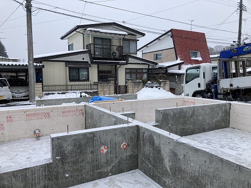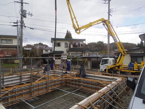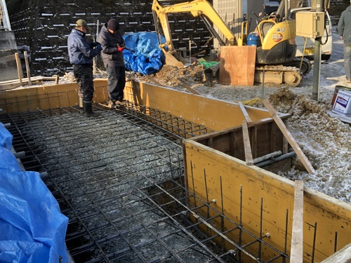 基礎工事は内枠も取り付き冬囲い準備も進んで、本日コンクリート打設をしています。