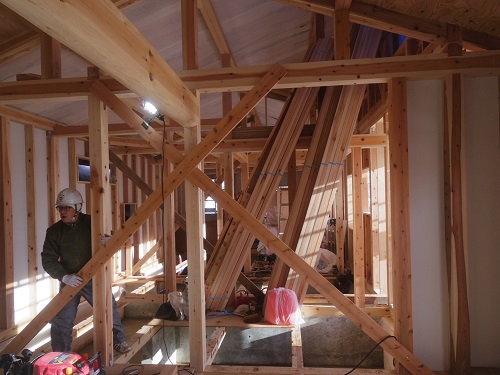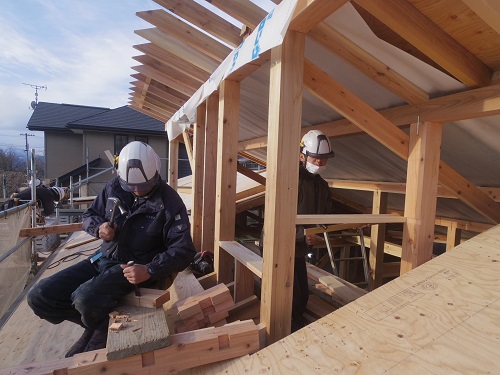 引き続きの垂木掛けと構造金物取付工事が進んでいます。
