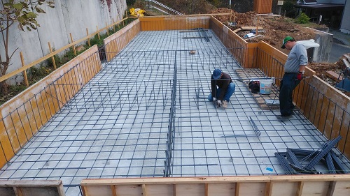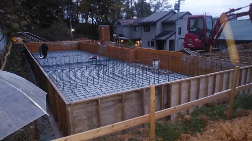 基礎配筋検査無事合格です。あとは天候次第でコンクリートの打設が始まります。
