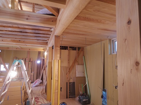 1階の天井も張り込んで、他の現場に追い越されていたところをすべて挽回できた雰囲気です。そうは言っても随分と後工期延期をいただいてしまっているので、更なる頑張りをしたいところです。