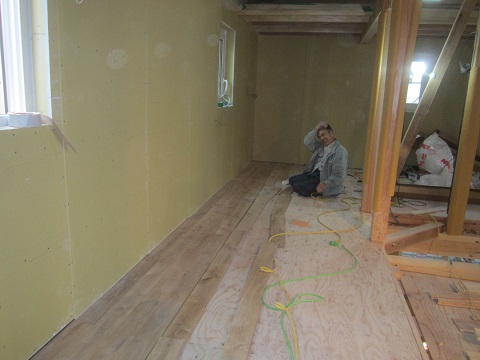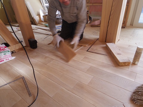 宮古の新築工事の床張込みはナラ材です。昨日で大方を張り上げて、今後は造作工事が進みます。木材屋さんから、赤松の床が品薄と脅かされ続けて嫌気がしていたので、広葉樹の床材に切り替え時かもしれません・・・