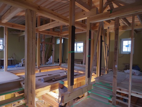 宮古の新築工事現場はスキップフロア型で、建築空間を有効利用しています。