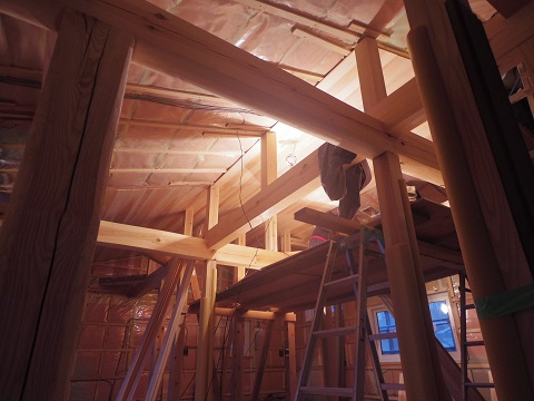 伝統の木組みと南部赤松の見栄えがする現場です。