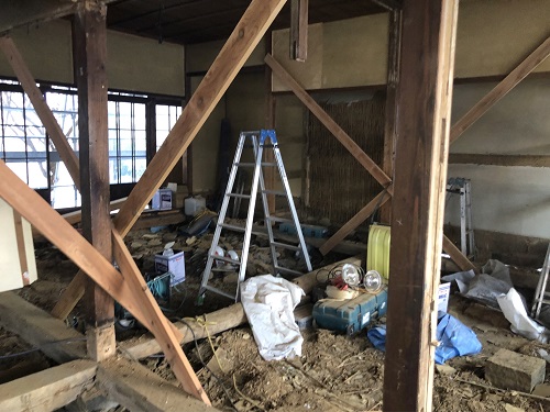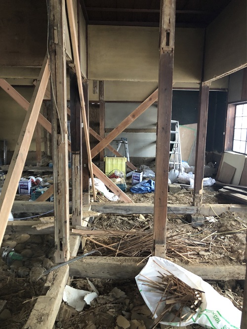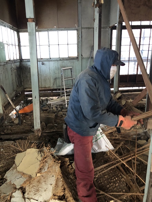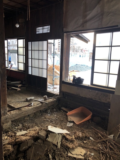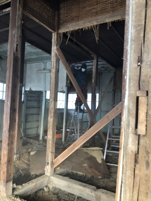 床解体の次は内部間仕切り壁の取り外しが進められました。