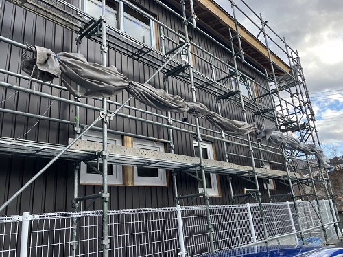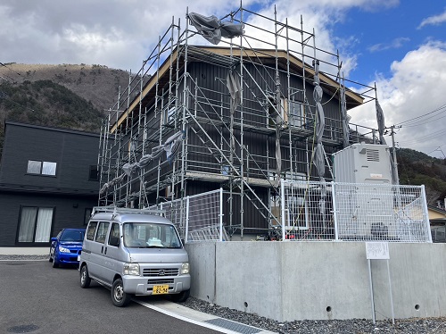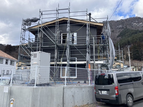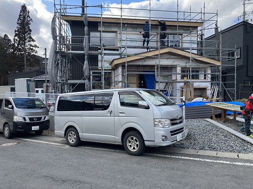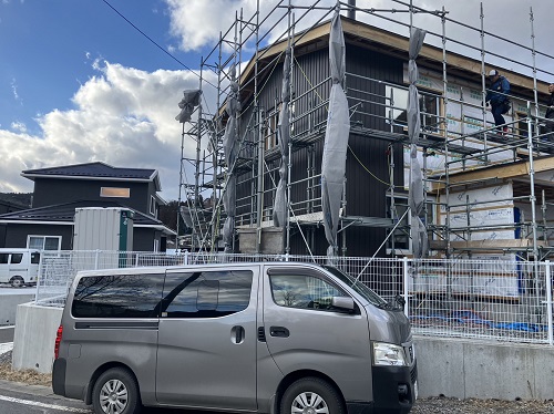 外壁工事」八割方完了したので、今週末で大方来週には外壁軒天まで追われるとの見込みです。内部は大工工事が引き続きです。