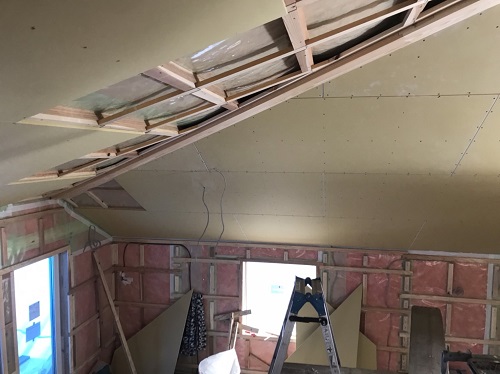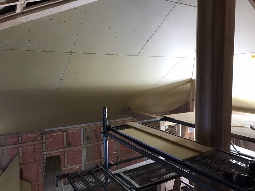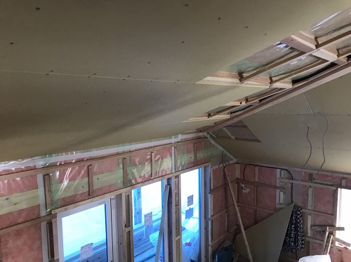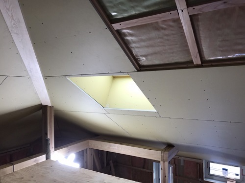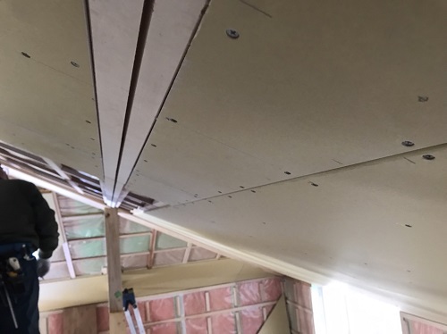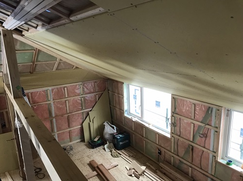 屋根断熱足場をそのまま利用して、PBの張込みが進みました。