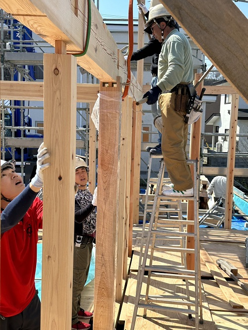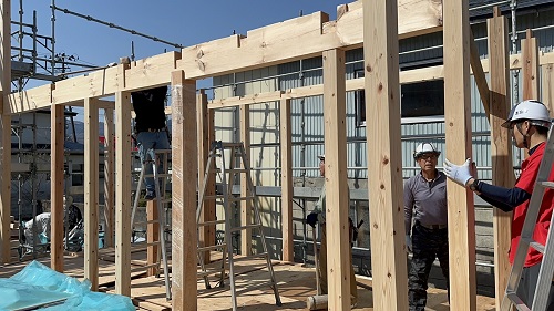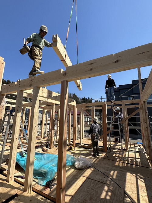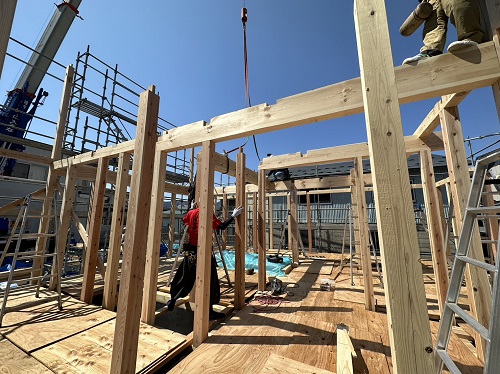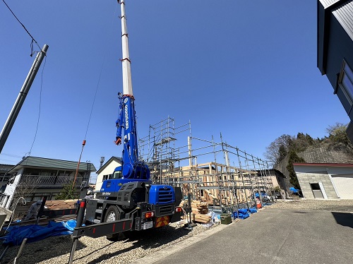 クレーンでの建て方が始まりました。