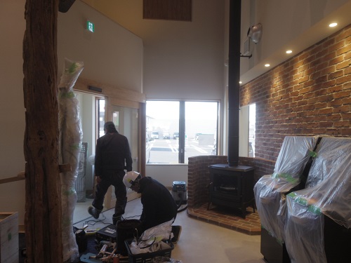 薪ストーブの設置も行われました。