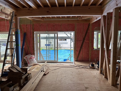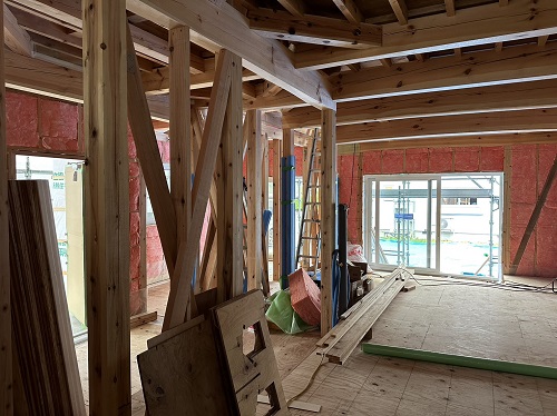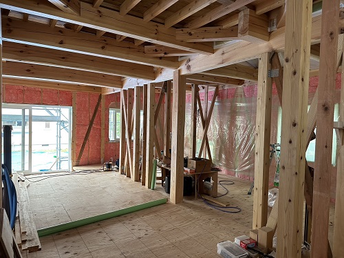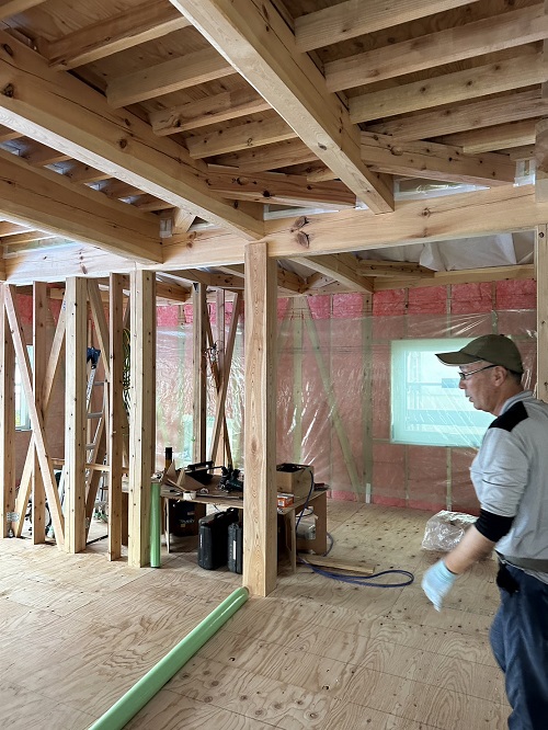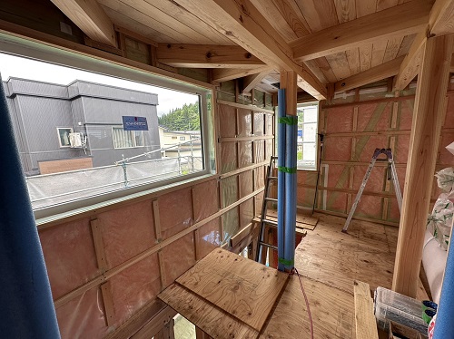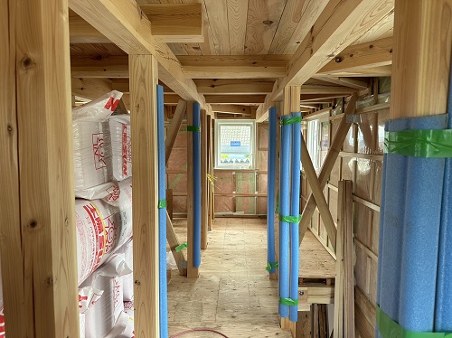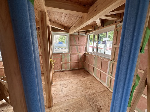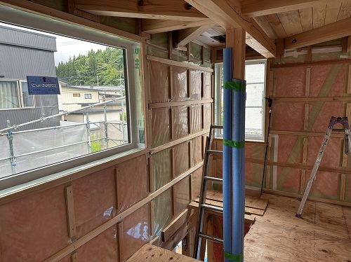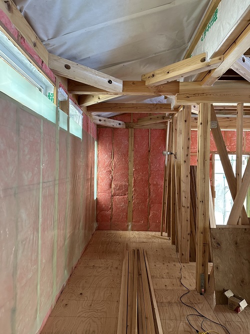2階の壁断熱防湿工事と下地胴縁の取り付けが進みました。