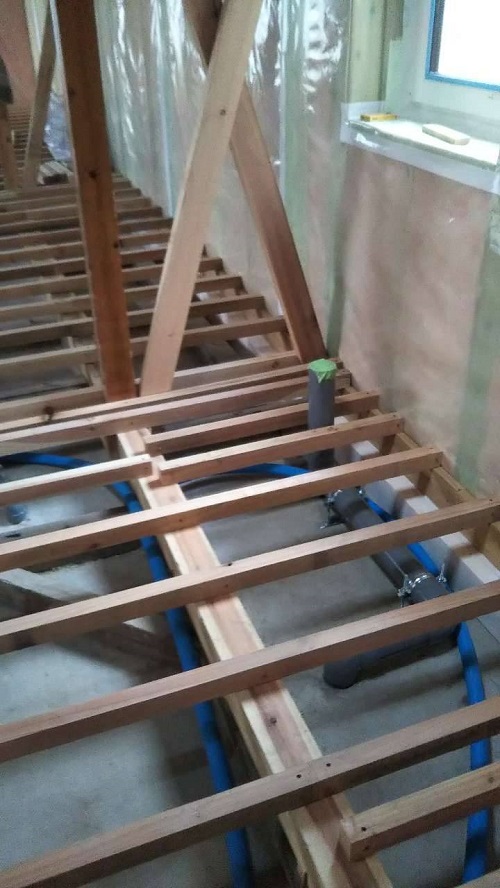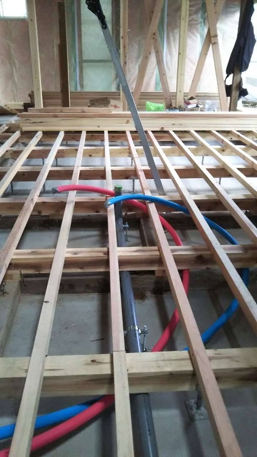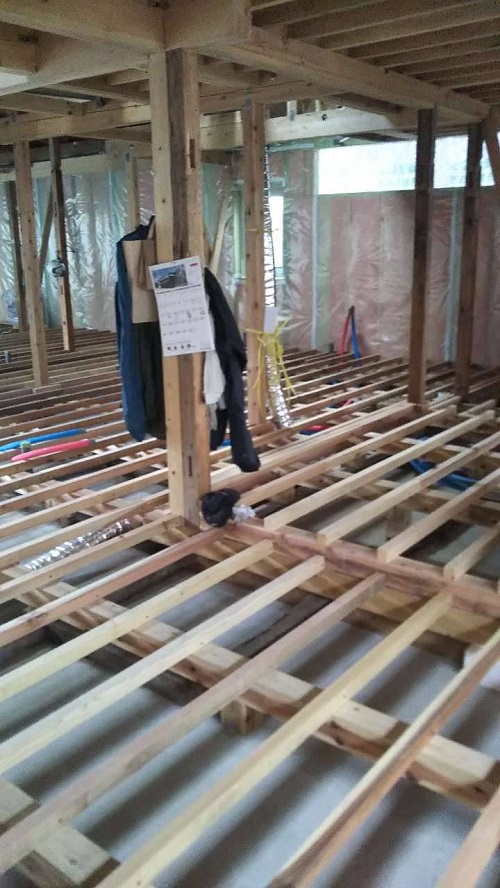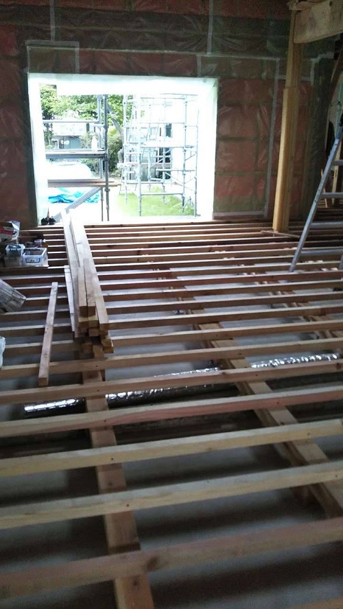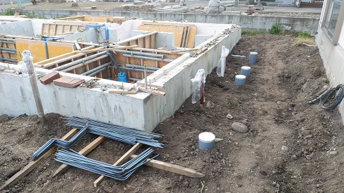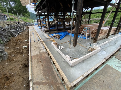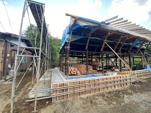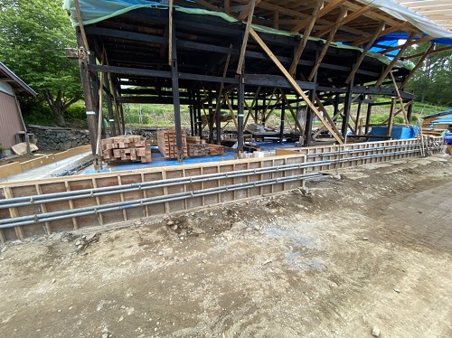 外周部の水道配管と整地が進み土間工事も進んでいます。