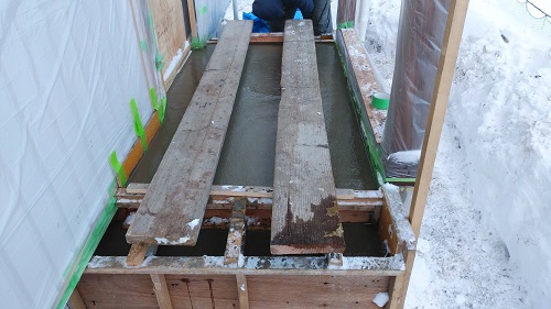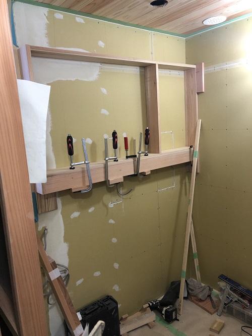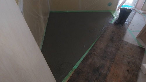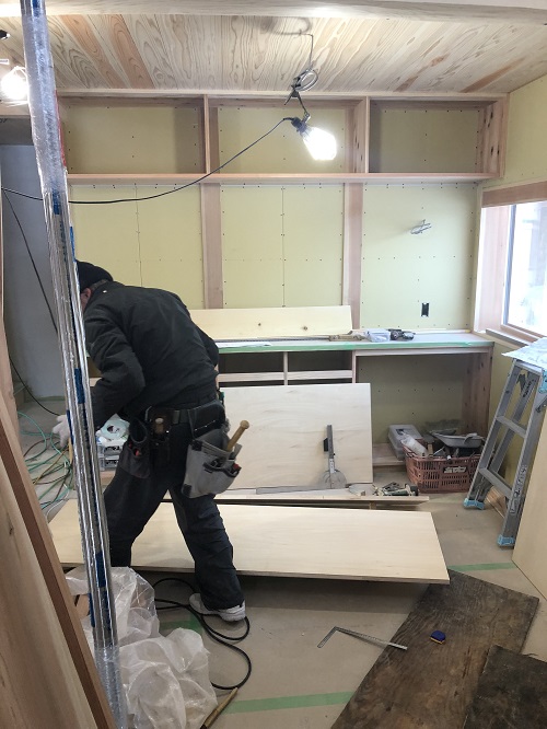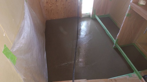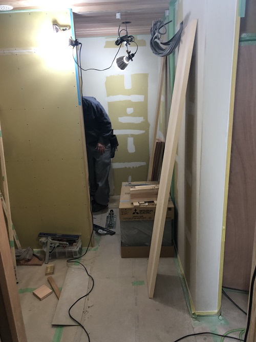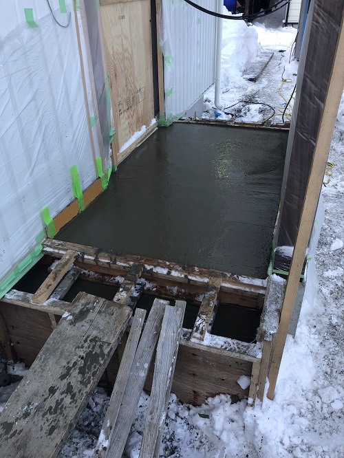 玄関ポーチのドマコンクリート打設と内装工事が進んでいます。
