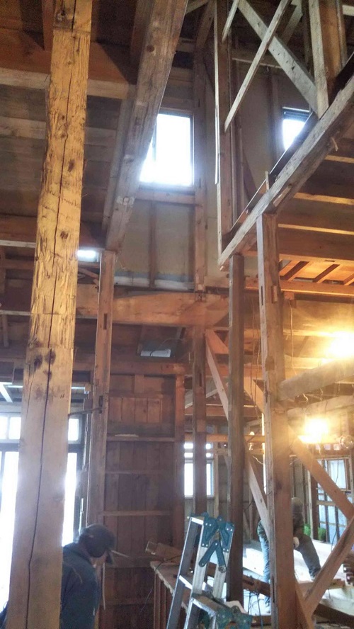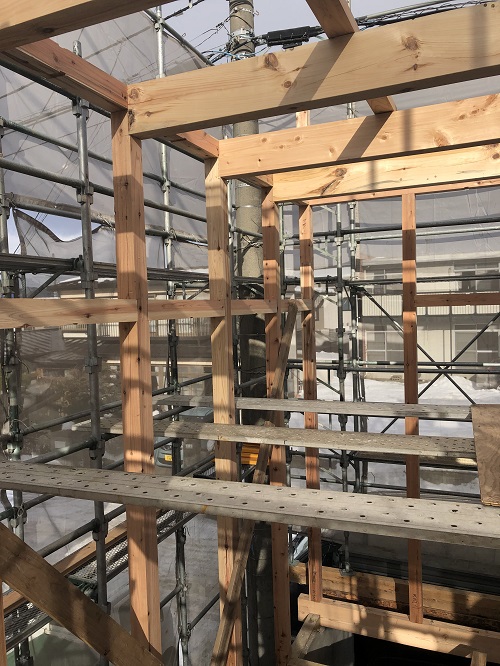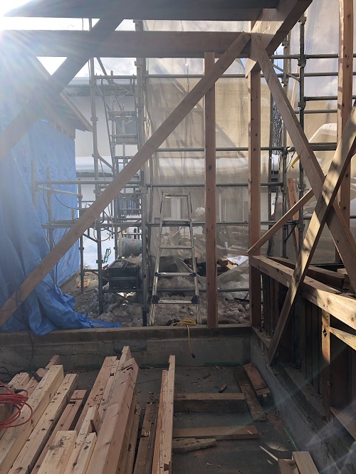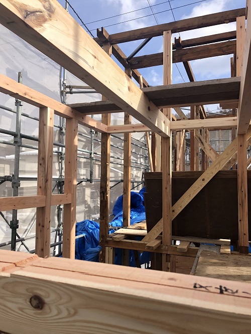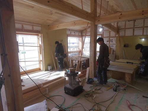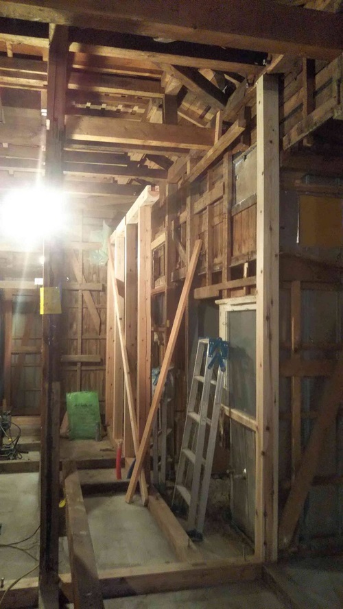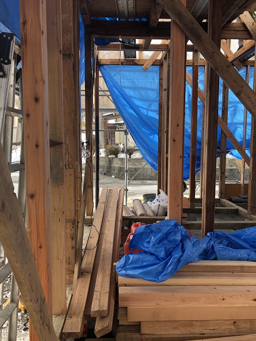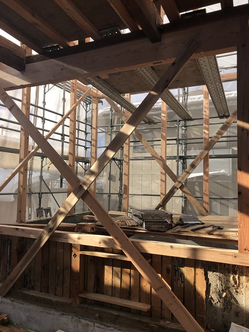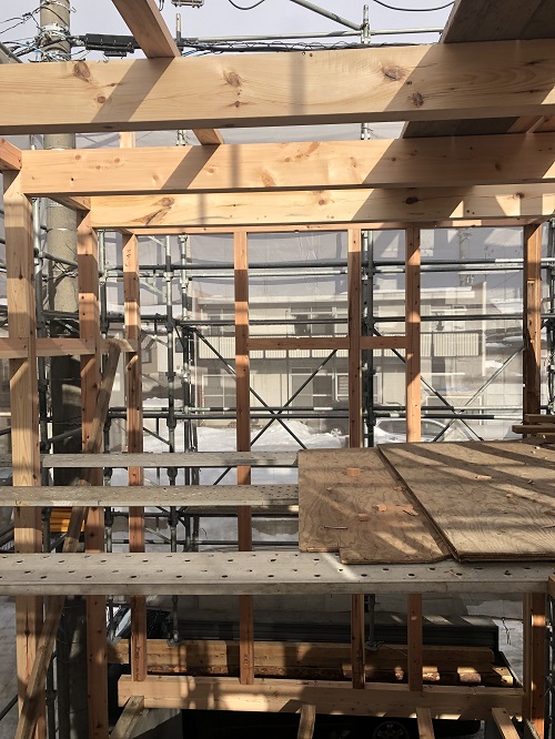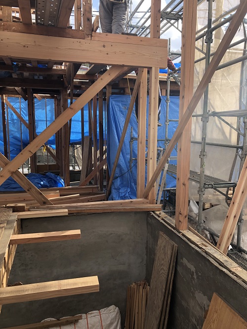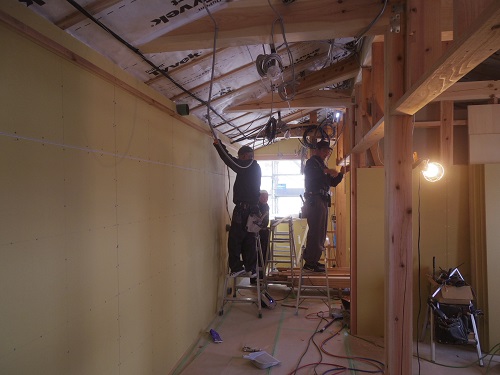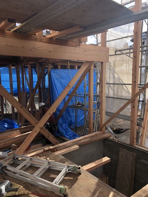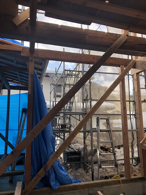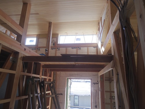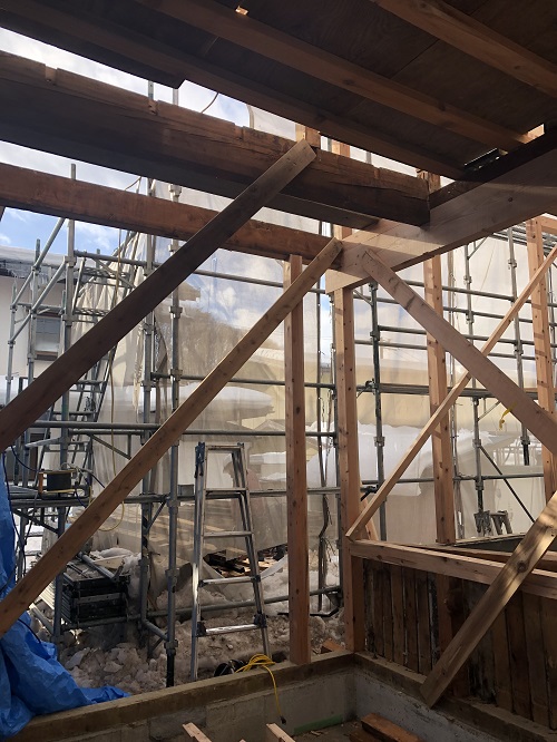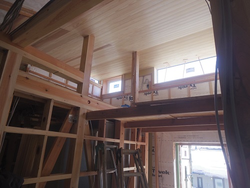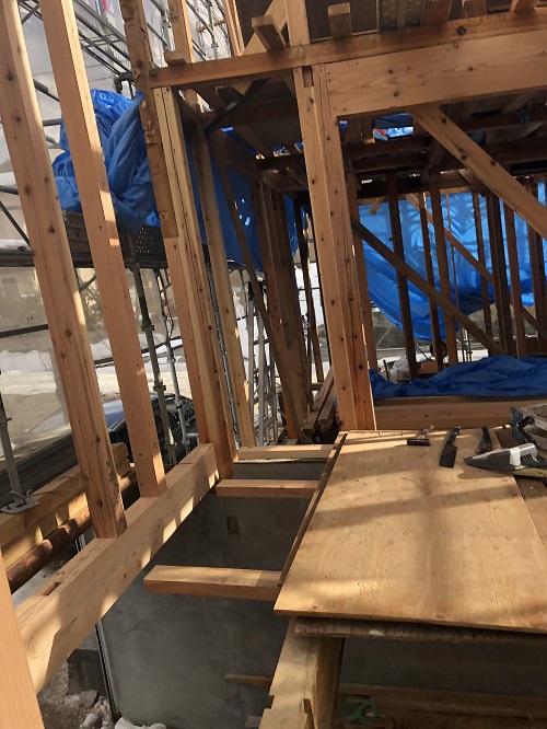 ボード張り天井板張込み共に進み、外階段工事も始まりました。