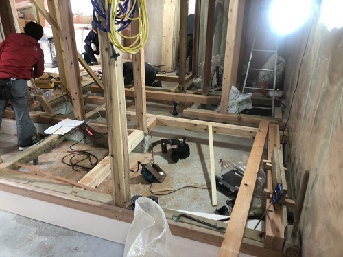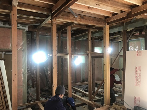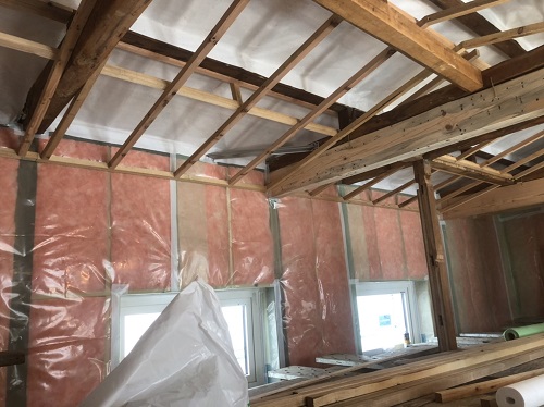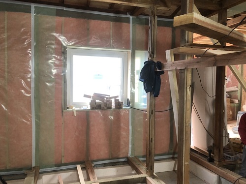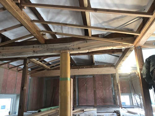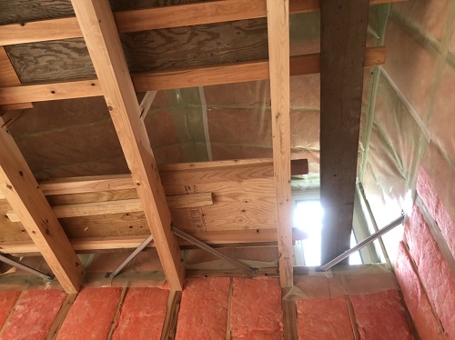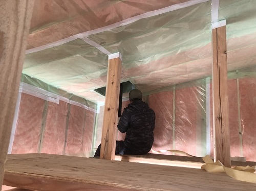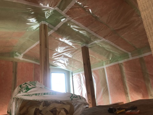 防湿工事が進み、天井断熱工事や床下断熱も進んでいます。