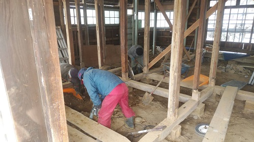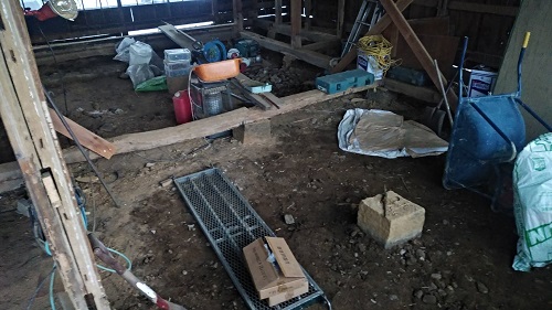 落とした土壁を片付けたので、引き続きで土間基礎工事に入ります。