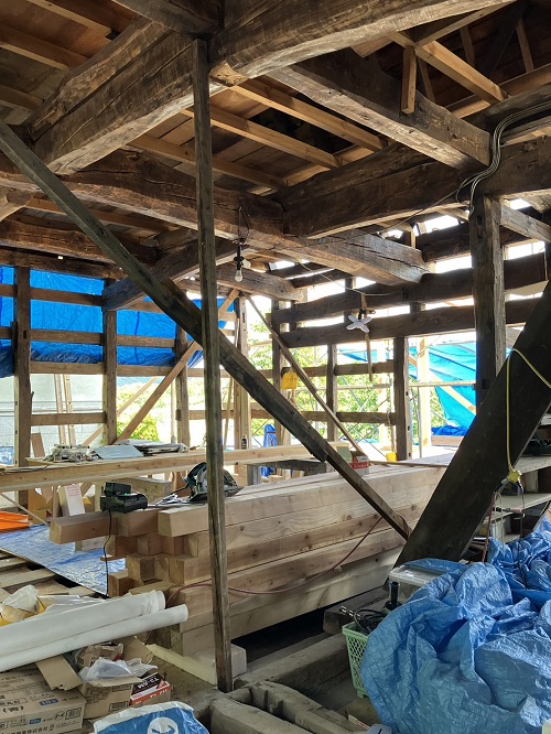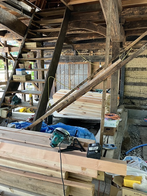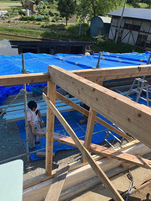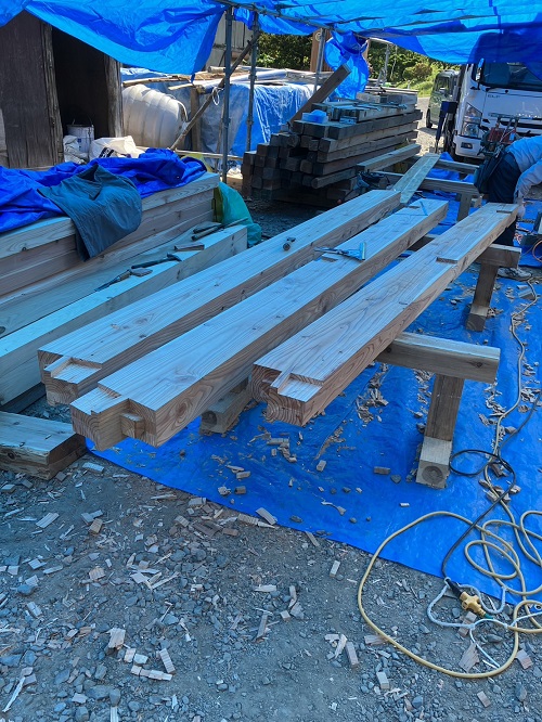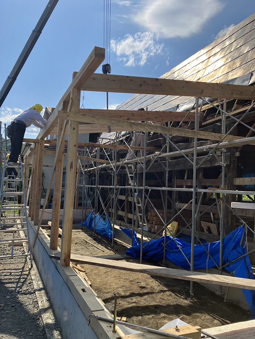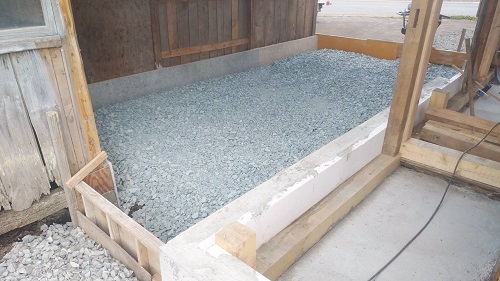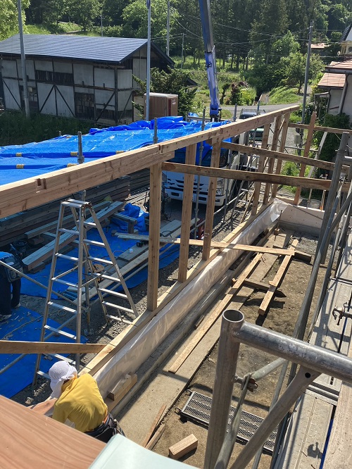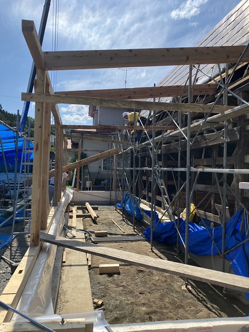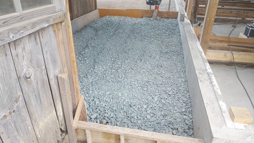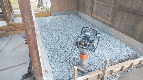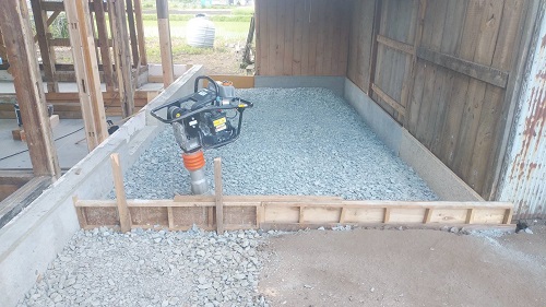 玄関先の土間工事砕石地業が進みました。確りと転圧しています。玄関と倉庫を繋ぐ通路になります。