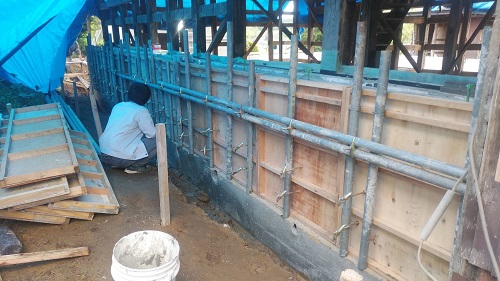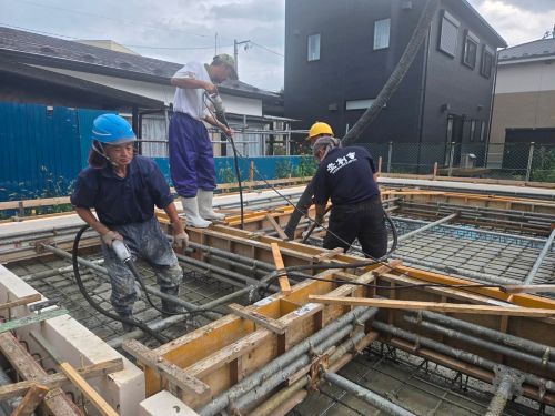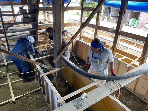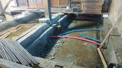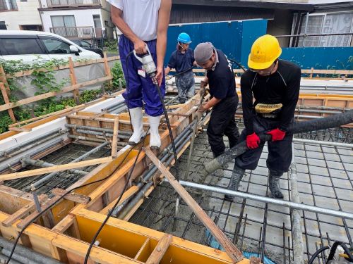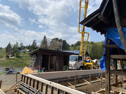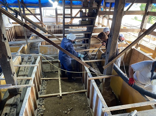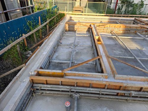 店舗地下室の基礎補強打設が何とか進みました。圧送ポンプ屋さんに大変だと断られて、難儀していましたが、どうにか対応してくれる業者んを見つけての無事打設です。