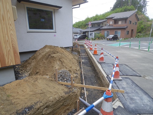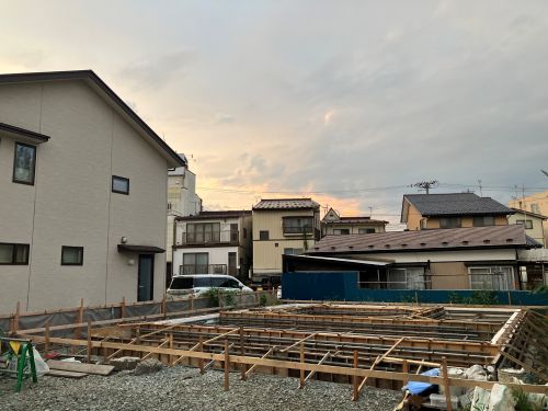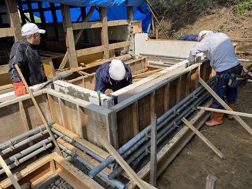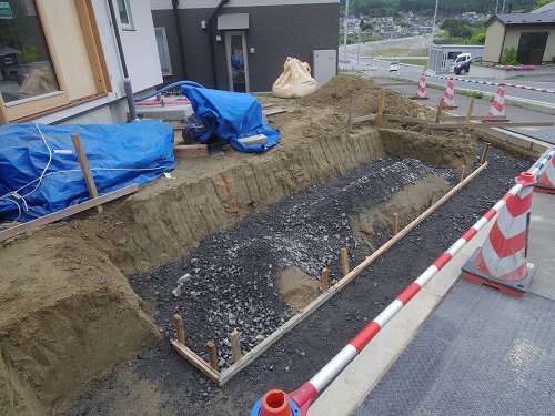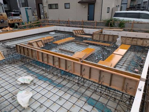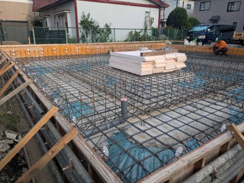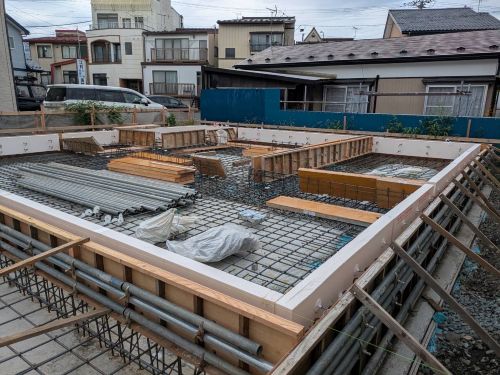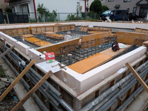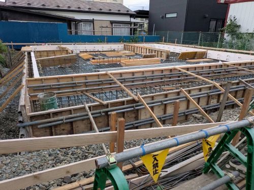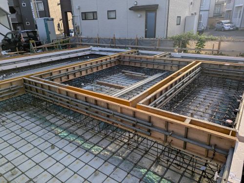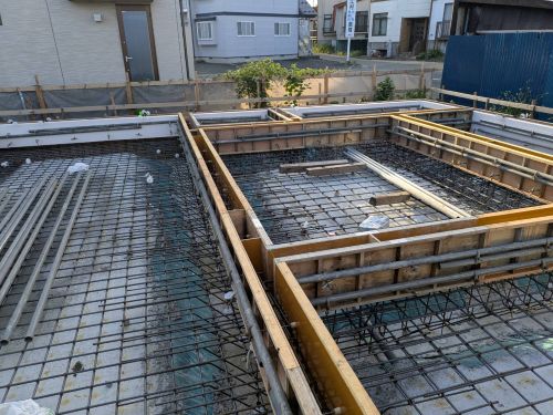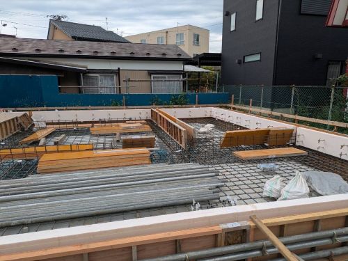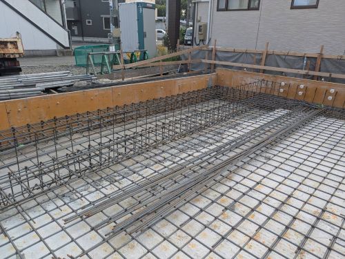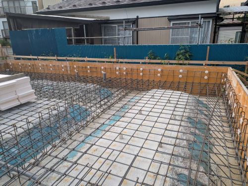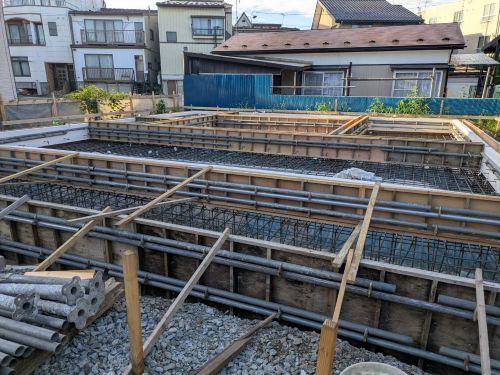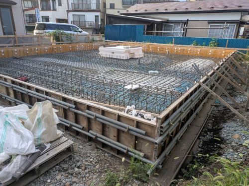 基礎の外枠は固めも進んで配筋も同時進行です。