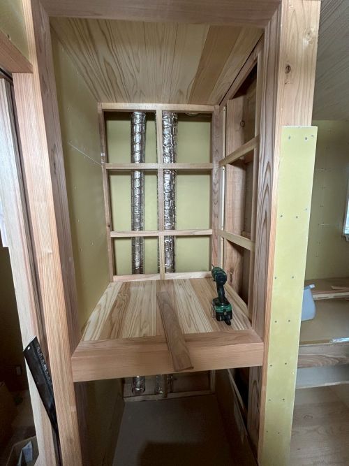 造作工事も進んでいます。まずは造り付洗面化粧台です。