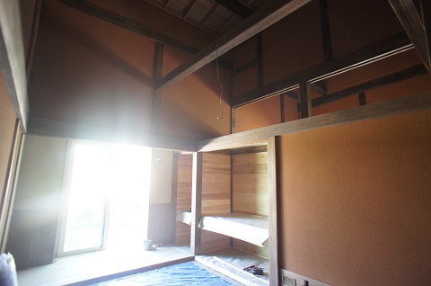茅葺屋根の古民家の様に、光の陰影に魅了される空間が出来上がりに近づいているのを告げています。