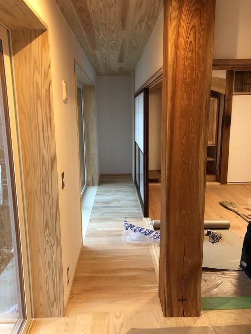養生の取り外し清掃を進めながら、既存建物の構造是正工事も行いました。