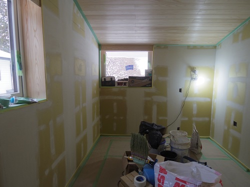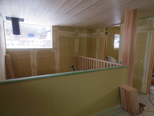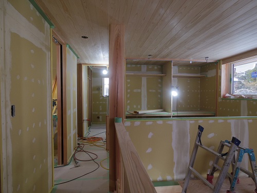 2階の内装パテ打ちが進みました。年明けは仕上げ塗りが予定されています。加えて1階大工造作も引き続きます。現在好摩の作業場でカウンター用の綺麗な板類の加工が取り組まれています。