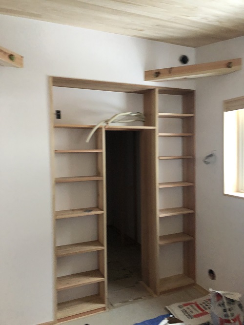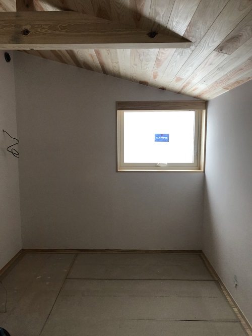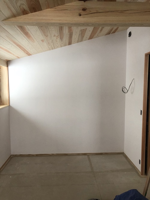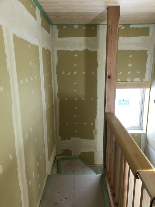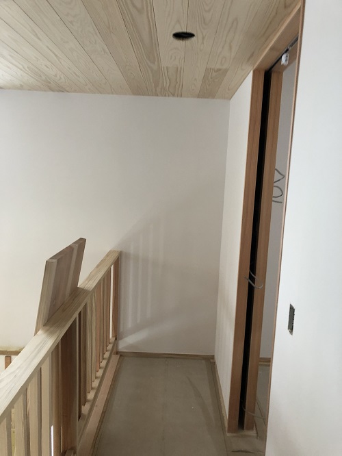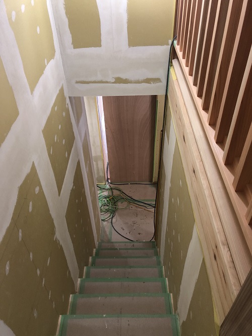 内装が進みました。このまま2階から階段を下りて1階の内装に取り掛かります。今月末の竣工予定です。