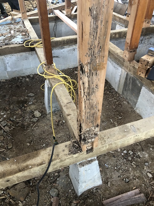 新建材の取り外し解体が進み、構造部の痛みや腐食の全容が露わになりました基礎補強と構造材の取り換え準備を進めています。