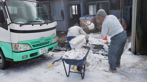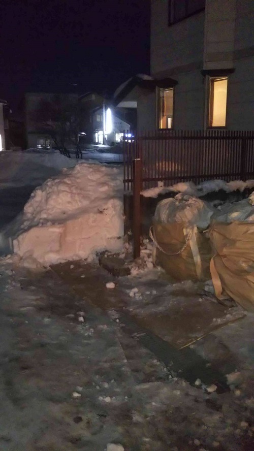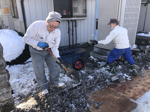 土間基礎新設の段取りに入りましたが、除雪作業の方に手間を取られています。