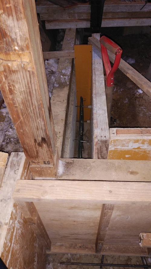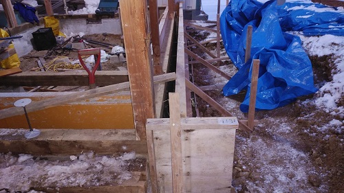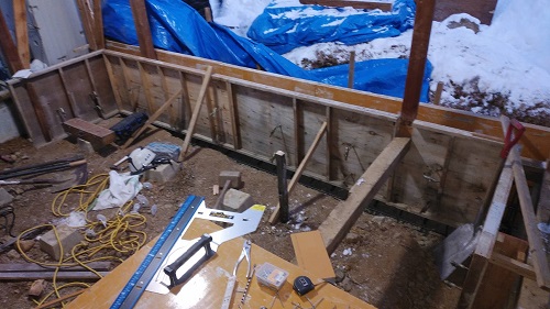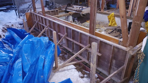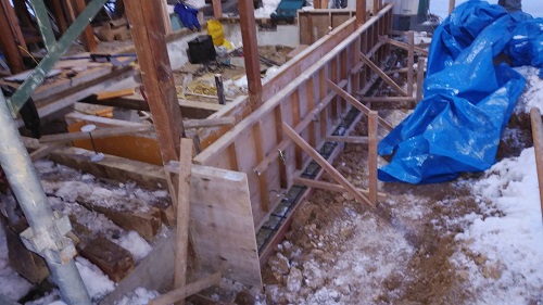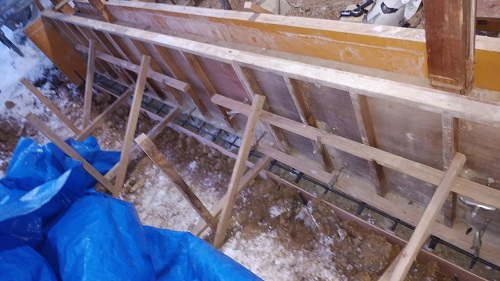 布基礎の不足部の基礎配筋と枠の取付が進みました。
