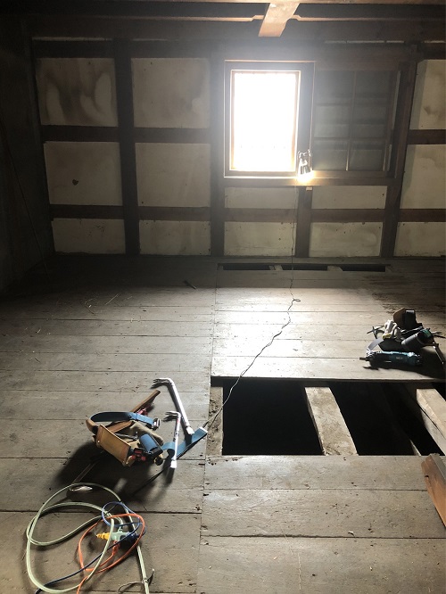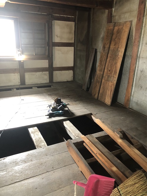 蔵を書庫への改装工事は各部の取り外しが進んでいます。