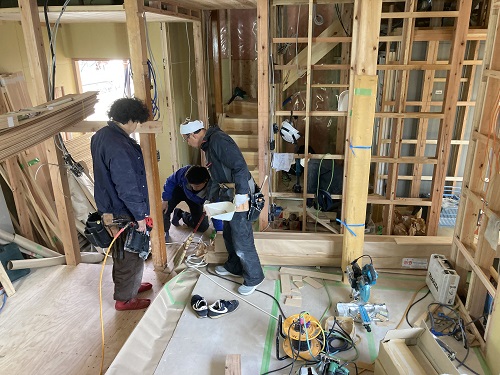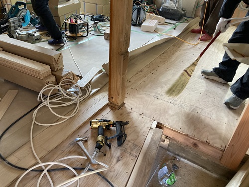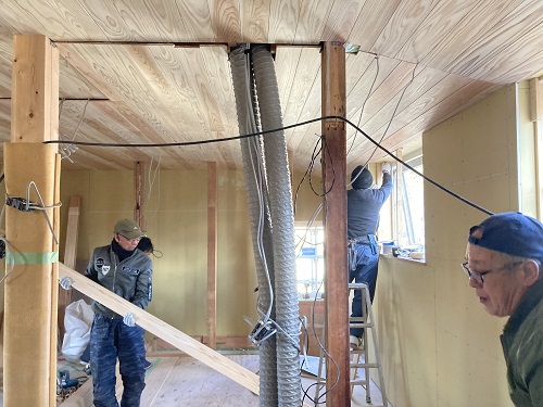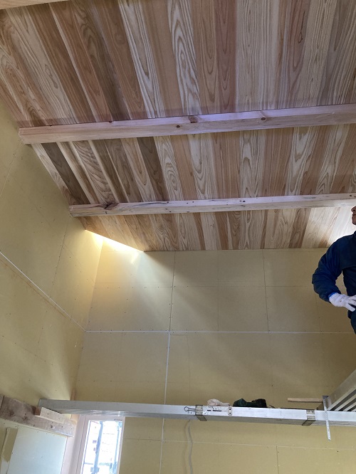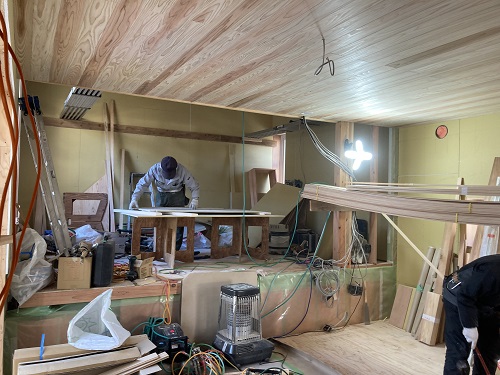 天井張りが進み床の張込みも進みました。各種枠付けも進んでいます。