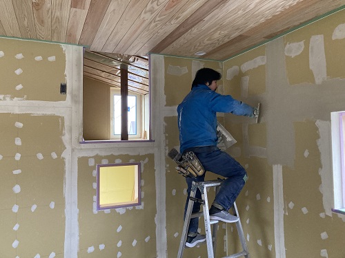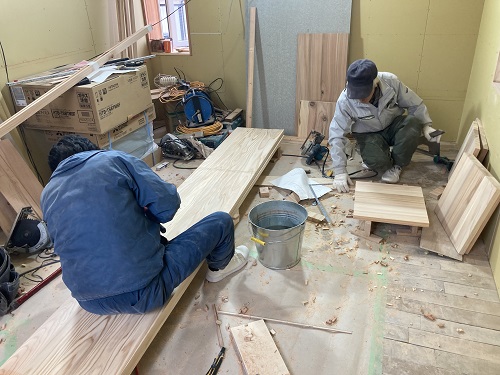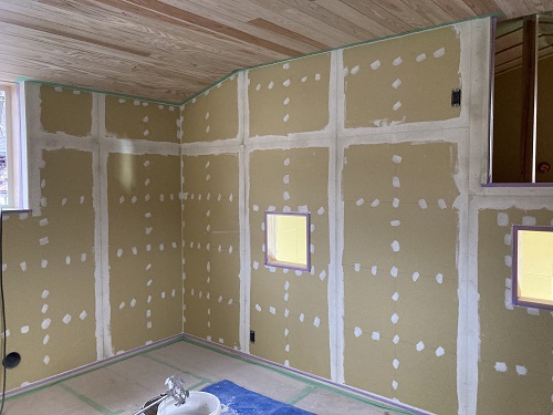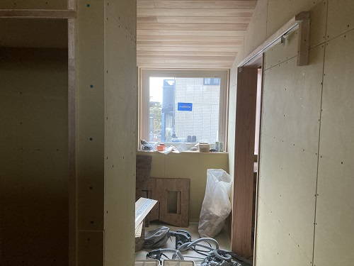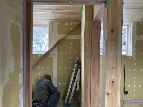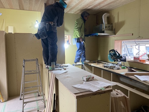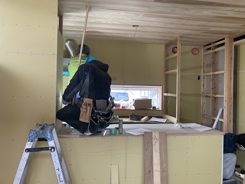 台所廻りの造作と内装パテ打ちが進んでいます。