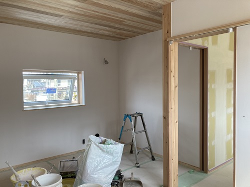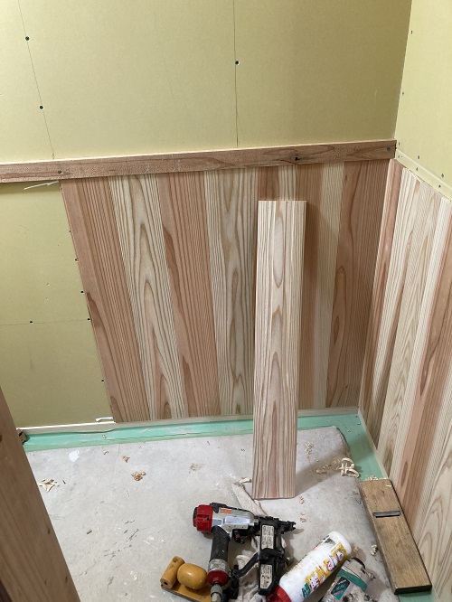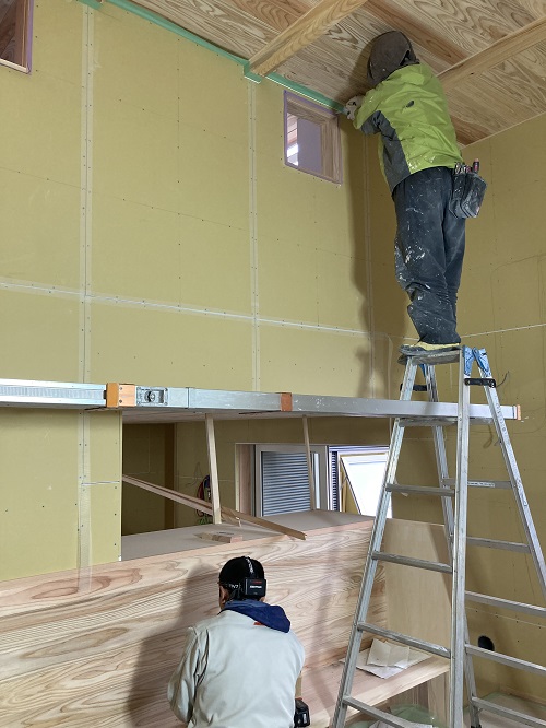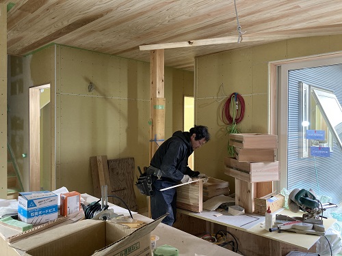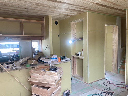 大工造作は引き続きで、内装も引き続き仕上がってきています。土間コン打設準備も進みました。