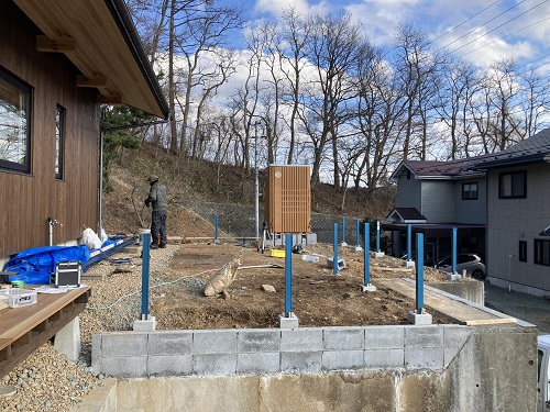 日曜日お引渡しをさせて頂きましたが、その翌日から外部フェンス工事を再開させて頂きました。