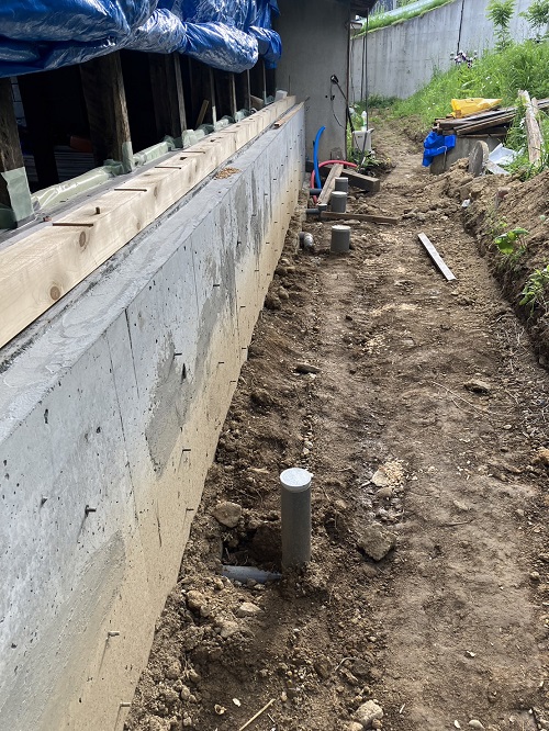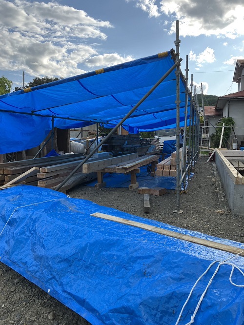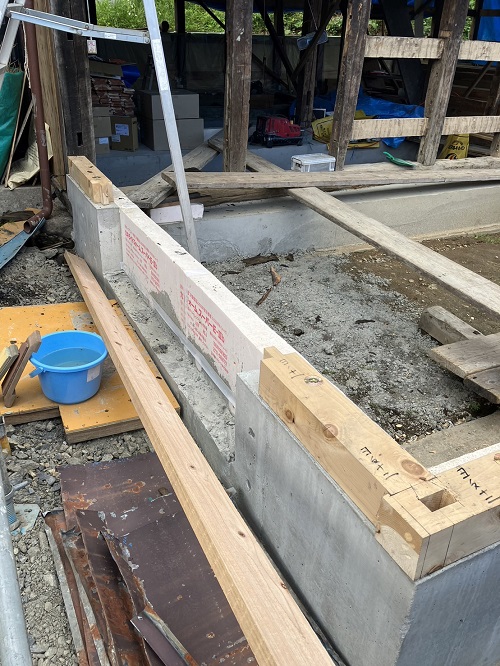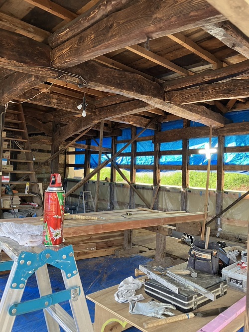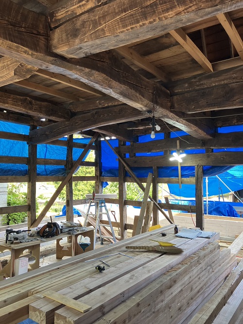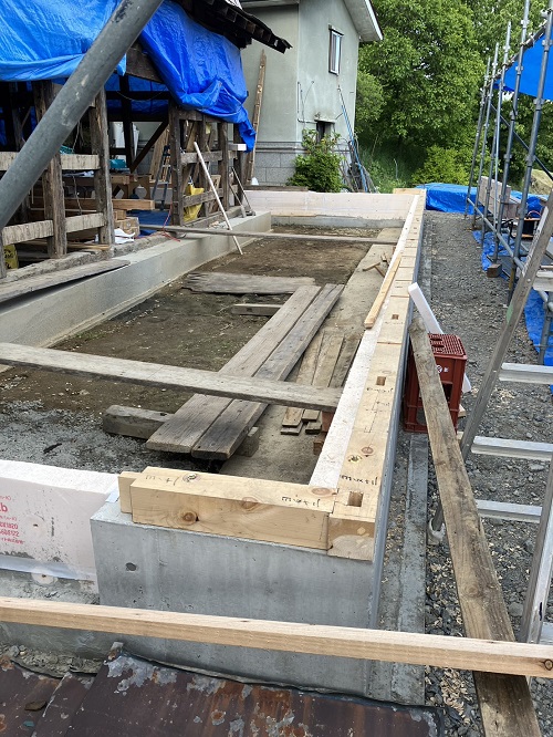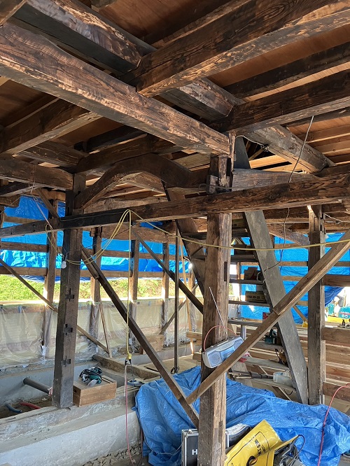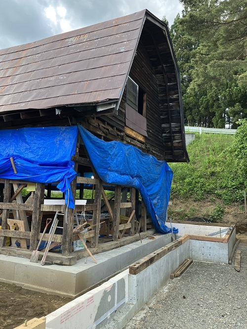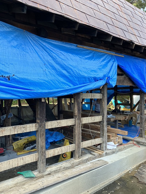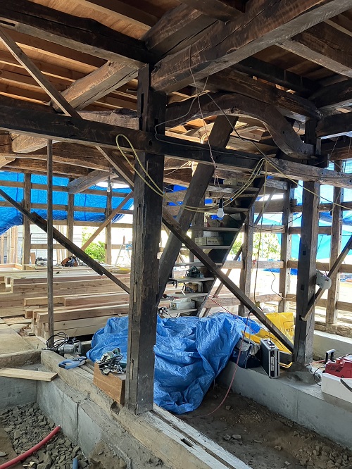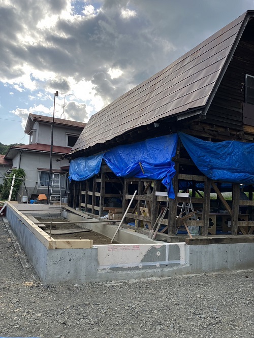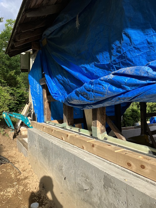 基礎を造るために一度外した下屋の木組みを元に戻していますが、その際に腐食している土台は新たに取り替えています。