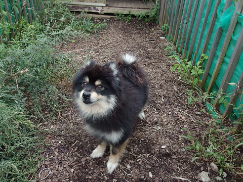 好摩の住人は、山羊や猫ばかりではありません、この犬のクマはポメラニアンなのです・・・血統症もあると、もとの飼い主は云い張りますが?近所で「クマクマ」と大きな声で呼ぶと、近所の人は誤解するかもしれません・・・