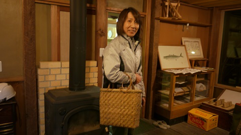 胡桃の木の皮で編んだ籠かんせいとの事です。