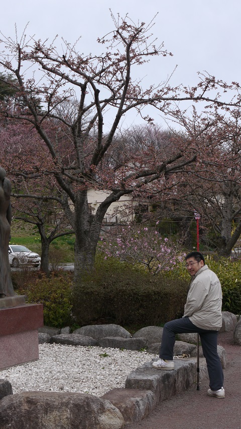 高松の池で桜を眺めながらの自主リハビリ風景です。足を動かす動きが軽やかになりました。