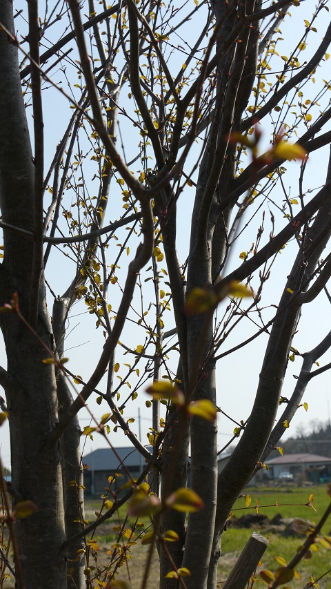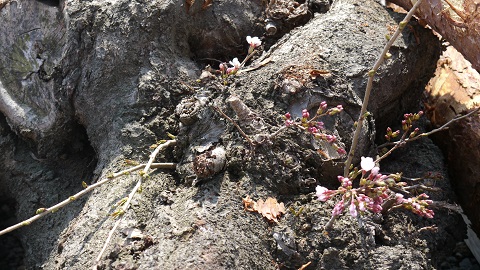 伐採桜に花が咲く