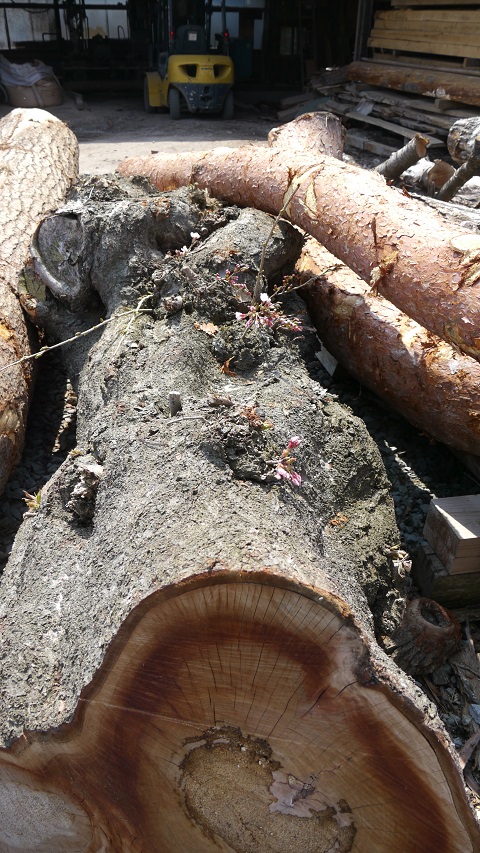 誠桜高校脇に大きな駐車場が出来ましたが、その為に伐られて縁あって当方に届いた丸太に花が咲きました。