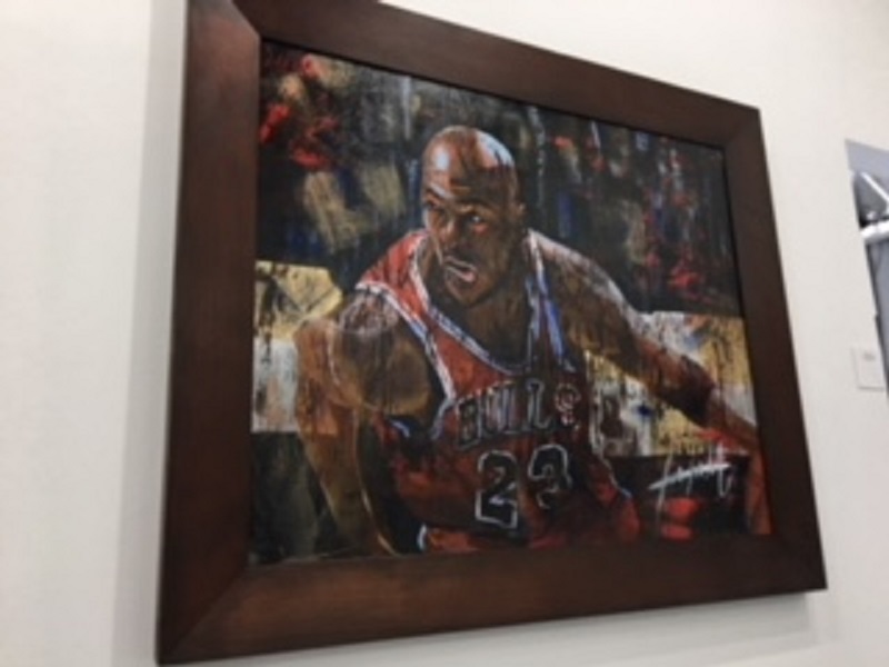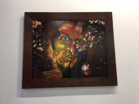 車椅子のアーティスト松嶺さんの個展を見て来ました。この木の額縁を作ったのが車椅子大工の大和田洋平です。