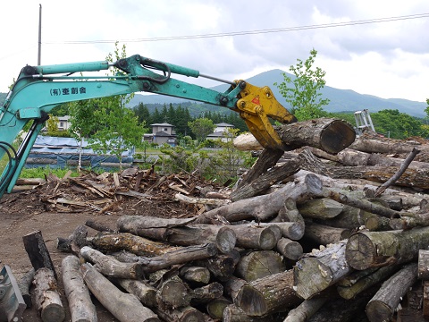 薪丸太の玉切りが進みましたので、薪割り人待ちです。