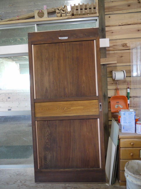 古建具なので、乾燥していても新たに断熱改装された住まいだと、その暖かさで、反りや狂いが生じてしまうものですが、こうして手直しできるのが木の建具の良さです。塗装も新建材ではなく、柿渋の古色仕上げだと再度同じように塗り上げることが出来ます。それが嫌だと、新建材の直せない建具を高く買って環境を破壊しながら使う事になるわけです。なので、当社では木の建具や古い建具の再生利用をお勧めしております。