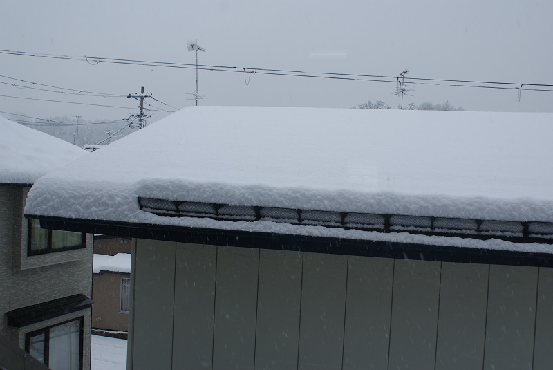 隣家の屋根に積もった雪の量です。20㎝ぐらいかと思われます。