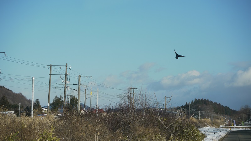 電車を写したつもりで鳥の宙返りが写っていました。