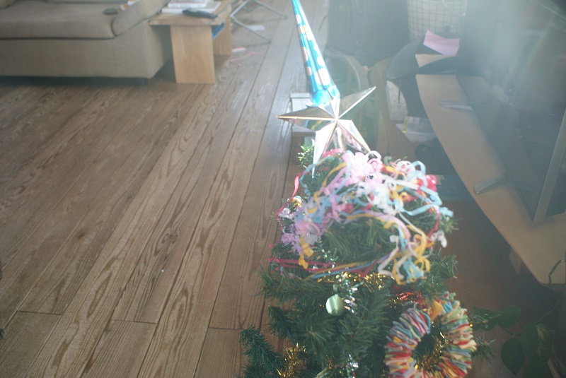 クリスマスツリーのクラッカーは私が左手で持って出来たんですよー・・・笑顔