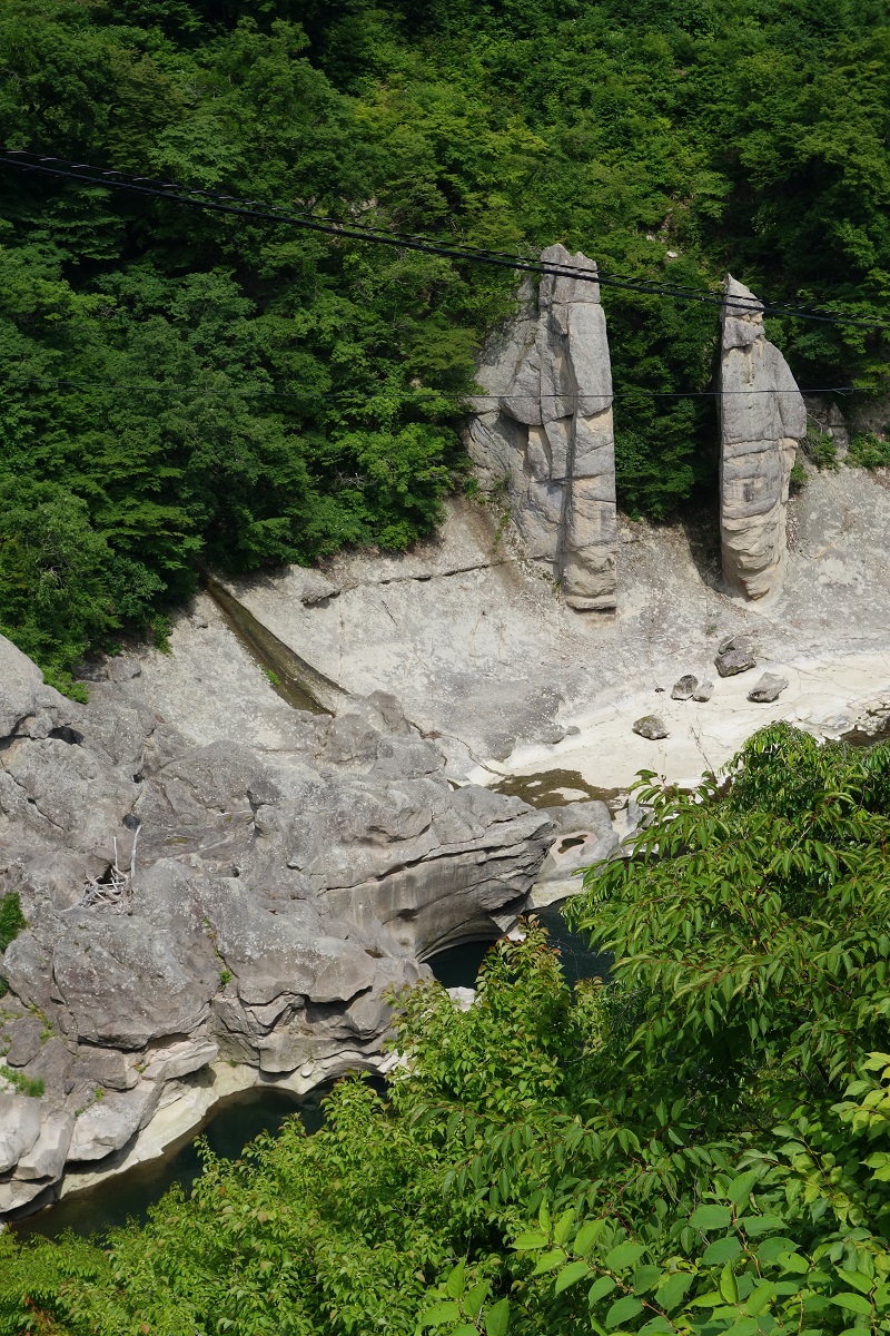 奥会津街道沿いの小岐須渓谷の屏風岩の夏です。ここも今では冬景色に美しい事でしょう